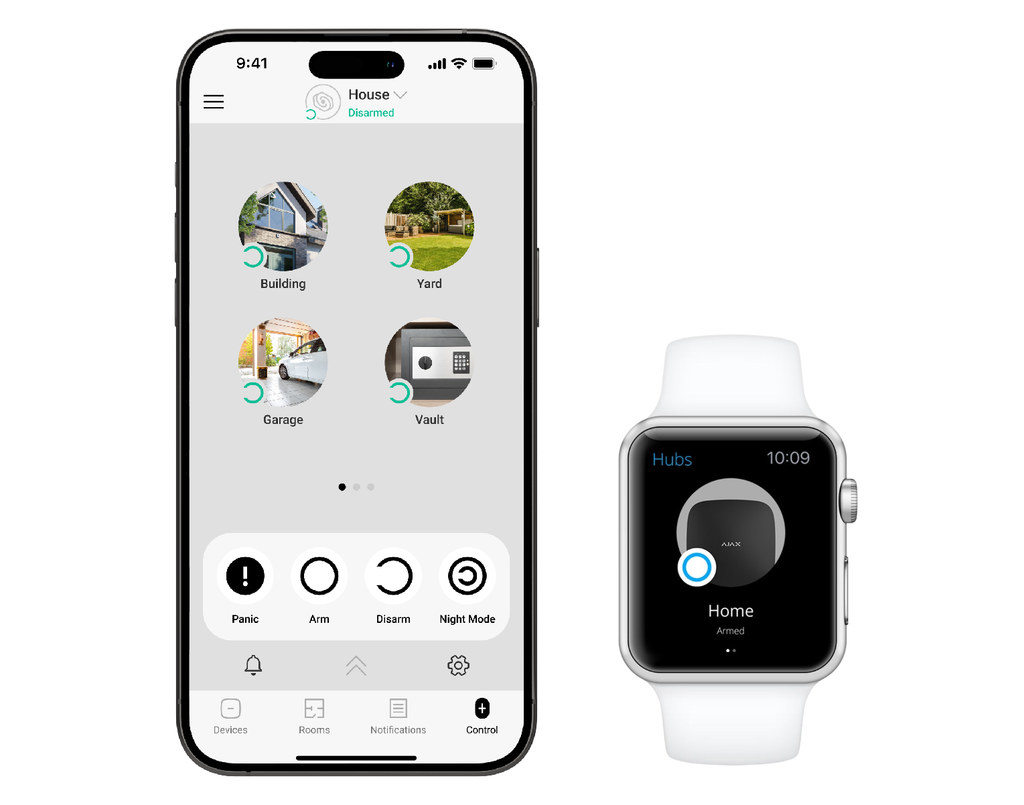 Smart App Control: Manage your Ajax security system with ease using the Ajax mobile app. The app allows you to arm or disarm your system, receive real-time alerts, monitor sensor activity, and even view event history—all from your smartphone, no matter where you are.